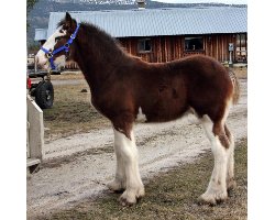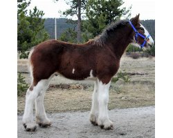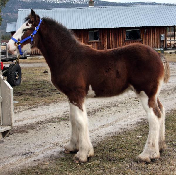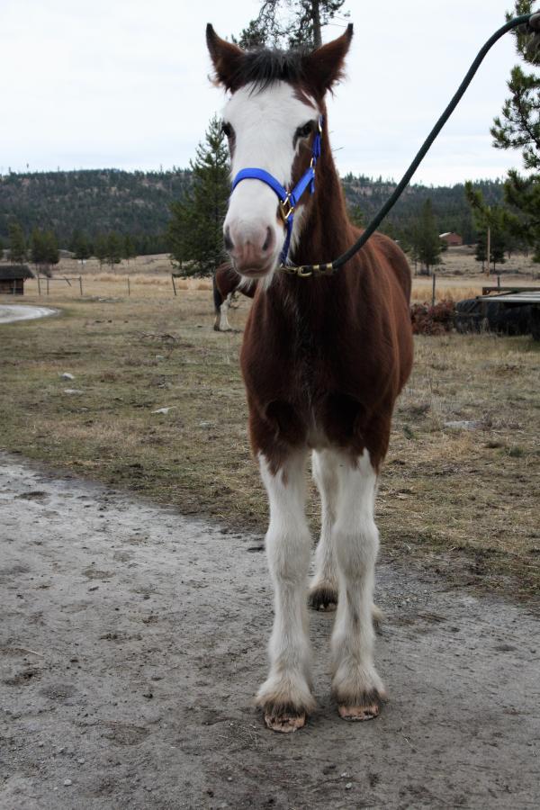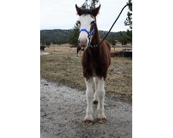 [ Color: Bay ] ] [ White Markings: Bay, front legs white to below shoulders, hind legs white to above hocks on back side and front of back legs white to gaskin, white at girth on both sides and underbelly, white spot right side of belly, wide blaze face, white extends under chin and up on left cheek, white splash left cheek, black spots nose, mouth, and chin. ]