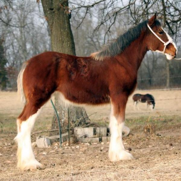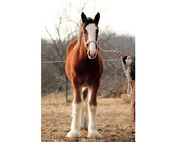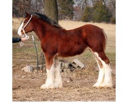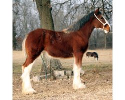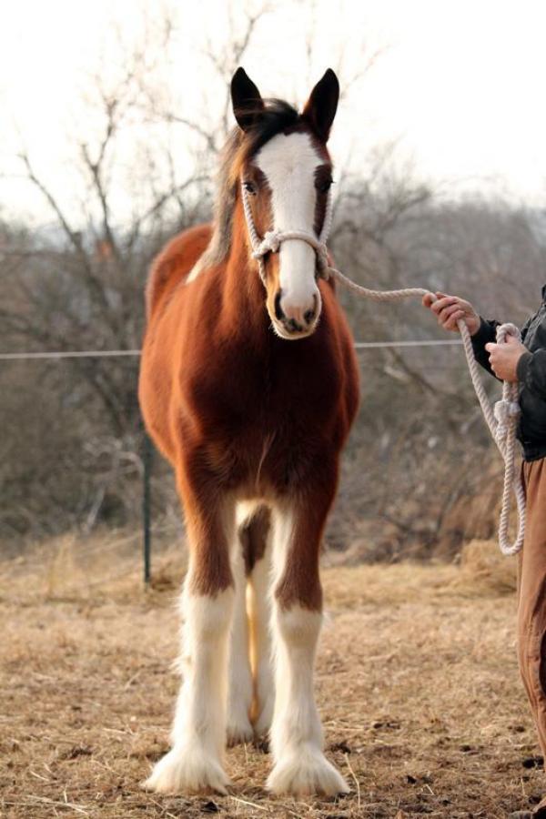 Dark bay, dark mane and tail, four white legs, white blaze face. ]