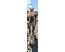 [ Color: Bay ] ] [ White Markings: Wide blaze extending over nose to chin, black spots on nostrils. Right foreleg white to knee, left foreleg white extending above knee, right hind leg white to below hock, left hind leg white above hock. Small white patches on both sides of belly. White hairs throughout body. ]